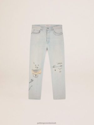 Golden Goose Danmark P0J62716 mænd | Golden Goose Samling blegede jeans med nødlidende behandling