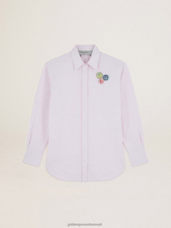 Golden Goose Danmark P0J621024 kvinder | Golden Goose Overdimensioneret rejsesamling med lyserøde og hvide lodrette striber og stifter