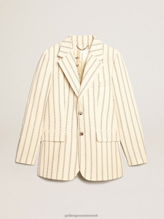 Golden Goose Danmark P0J621049 kvinder | Golden Goose Enkelt-breasted fløde bomuldsblazer med jacquard motiv