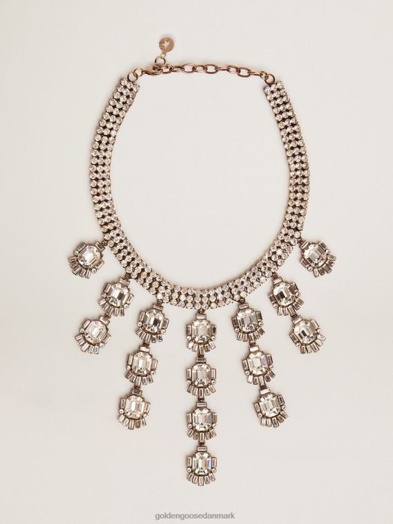 Golden Goose Danmark P0J62295 kvinder | Golden Goose Deco Jewelmates Collection halskæde i gammel guldfarve med baguetteformede drop krystaller