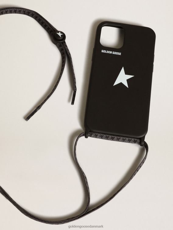 Golden Goose Danmark P0J62298 kvinder | Golden Goose Sort iPhone 12 og 12 Pro Max -sag med kontrasterende hvidt logo og logo -lanyards