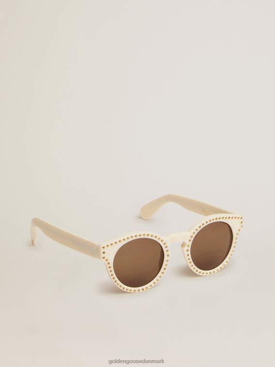 Golden Goose Danmark P0J62331 kvinder | Golden Goose Sunframe Cameron Panthos Style med hvide ramme Golden stænger og gulddetaljer