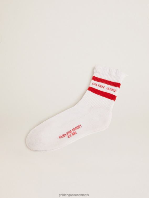 Golden Goose Danmark P0J62348 kvinder | Golden Goose Bomuldssokker med nødlidende finish røde striber og logo