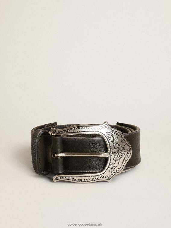 Golden Goose Danmark P0J62413 kvinder | Golden Goose Tvillingerbælte i sort læder med vintage sølvfarvede dekorationer