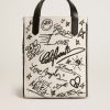 Alsidighed og design møder materialer af høj kvalitet: Californiens tasker er designet til storbyen takket være deres rummelige interiør og praktiske skulderrem. Denne øst-vest-model, lavet af hvid faux pels, indeholder tone-til-tone gylden bogstaver med kontrasterende lysebrun kantning.