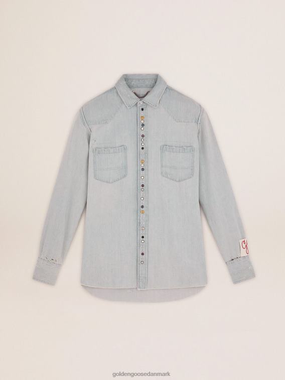Golden Goose Danmark P0J62700 mænd | Golden Goose Collection Bleached Denim Shirt med hamrede studs