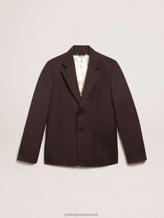 Golden Goose Danmark P0J62703 mænd | Golden Goose Journey Collection single-breasted blazer i lakridsfarvet uld gabardine med hornknapper