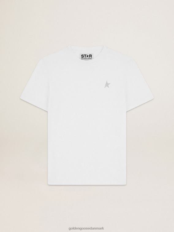 Golden Goose Danmark P0J62706 mænd | Golden Goose White Star Collection T-shirt med stjerne i sølvglitter på fronten