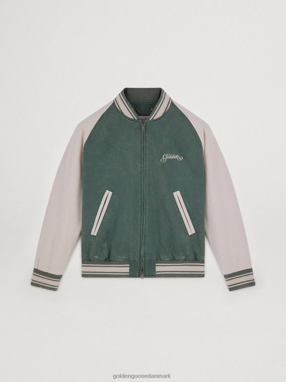 Golden Goose Danmark P0J62720 mænd | Golden Goose Militær-grøn og hvid rejse-samling Eric Bomber Jacket med en indbygget effekt og kontrasterende broderi