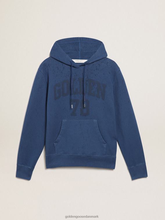 Golden Goose Danmark P0J62739 mænd | Golden Goose Midshipman-Blue Journey Collection sweatshirt med gyldne 78 bogstaver og regneffektbehandling