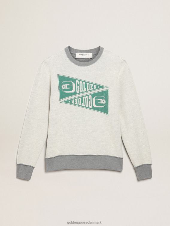 Golden Goose Danmark P0J62753 mænd | Golden Goose Melange-Gray Collection sweatshirt med grøn gylden print