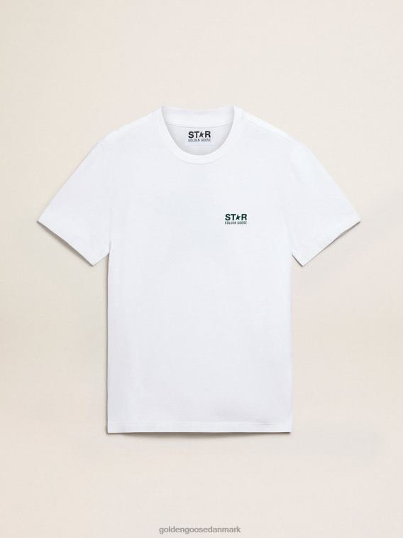 Golden Goose Danmark P0J62755 mænd | Golden Goose White Star Collection T-shirt med kontrasterende grønt logo og stjerne