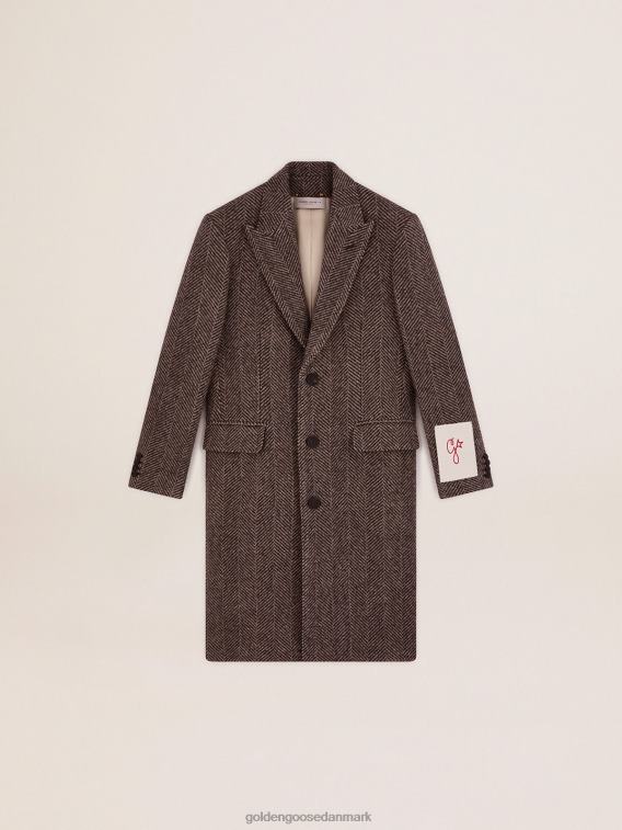 Golden Goose Danmark P0J62774 mænd | Golden Goose Enkeltbrystet frakke i uld med sildeben vævet i beige og grå