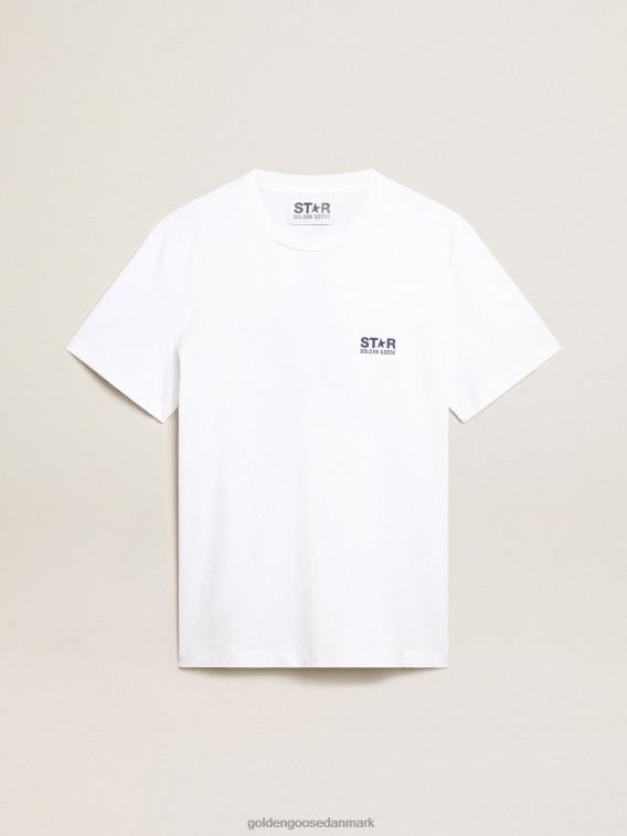 Golden Goose Danmark P0J62797 mænd | Golden Goose hvid t-shirt med mørkeblå stjerne på bagsiden