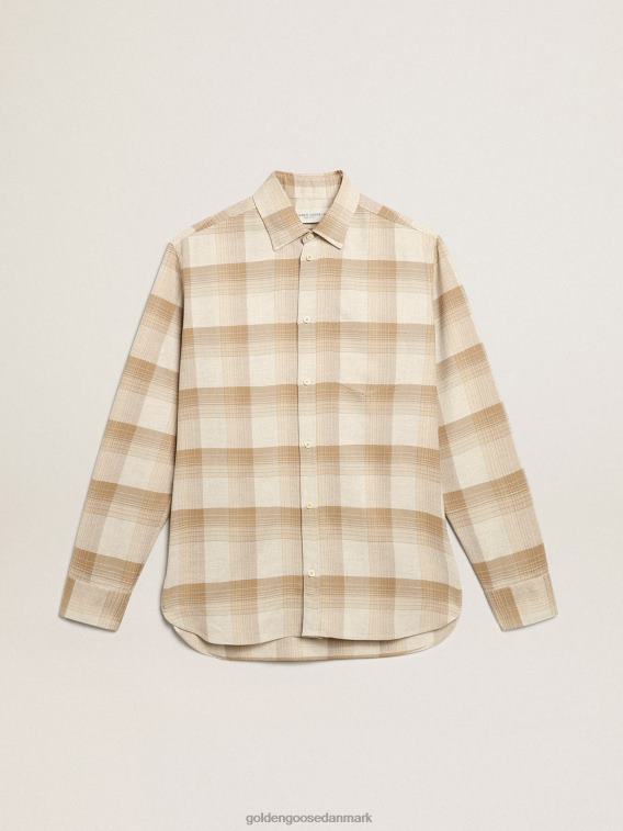 Golden Goose Danmark P0J62779 mænd | Golden Goose Kortærmet skjorte i pergamentfarvet linned