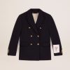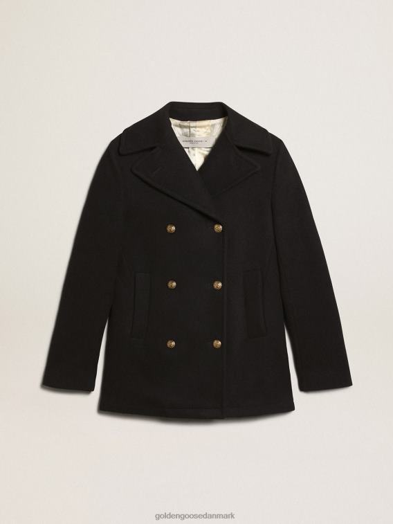 Golden Goose Danmark P0J62919 kvinder | Golden Goose Mørkeblå peacoat med guldfarvede heraldiske knapper