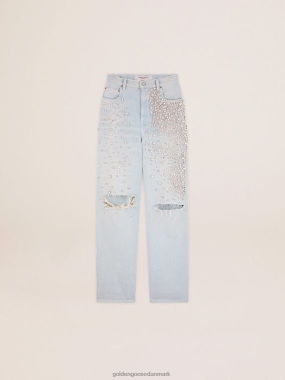 Golden Goose Danmark P0J62927 kvinder | Golden Goose Samling blegede kim jeans med cabochon krystaller