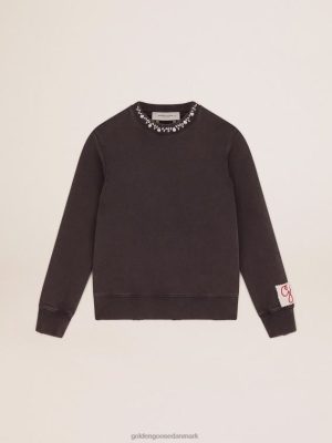 Golden Goose Danmark P0J62930 kvinder | Golden Goose Rundehals sweater i mørkegrå bomuld med logo på bagsiden