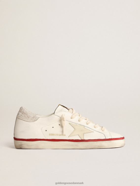 Et tidløst ikon endnu et, der konstant udvikler sig. Hos Golden elsker vi at tage vores klassikere og omarbejde dem hele tiden, altid fra en ny vinkel. I en begrænset udgave og nummereret mængde har disse kvinders superstjerne i White Nappa læder en elfenben læderstjerne og en off-white ruskindfane fane. Den røde stribe på rævning og cremefarvede snørebånd tilføjer finish.