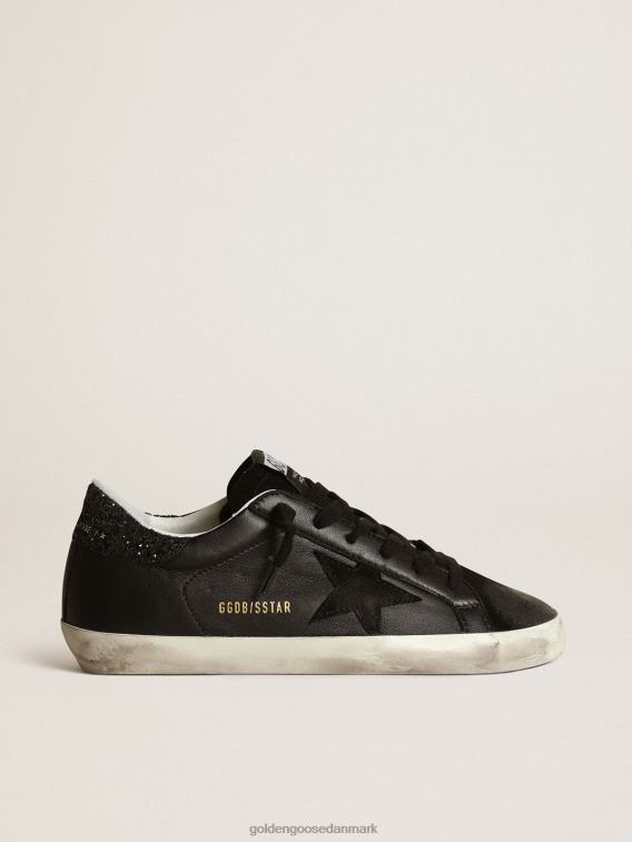 Golden Goose Sko Dame P0J62285 kvinder | Golden Goose Superstjerne i sort nappa med sort stjerne og glitterhælfane