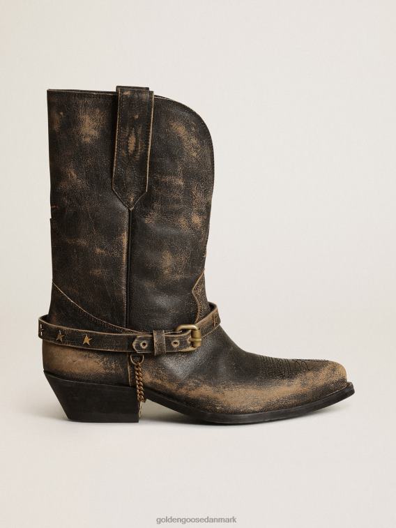 Golden Goose Sko Dame P0J62426 kvinder | Golden Goose Low Wish Star Boots i blankt sort læder med kæde