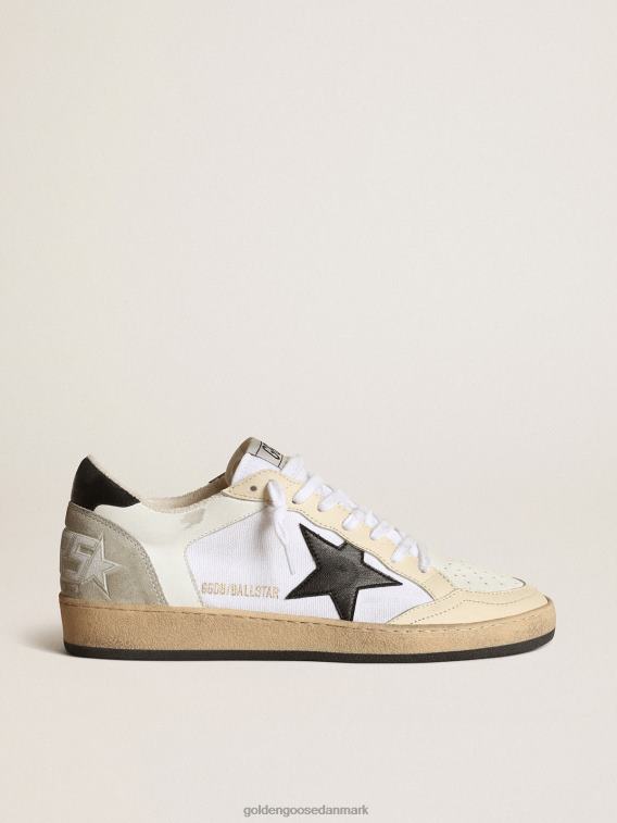 Golden Goose Sko Dame P0J6284 kvinder | Golden Goose Ball Star -sneakers i hvidt lærred og læder med Ivory -læderindsatser og Black Nappa Leather Star