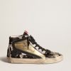 Golden Goose Sko P0J62662 mænd | Golden Goose Slide Penstar i Army Green Canvas med en isfarvet stjerne