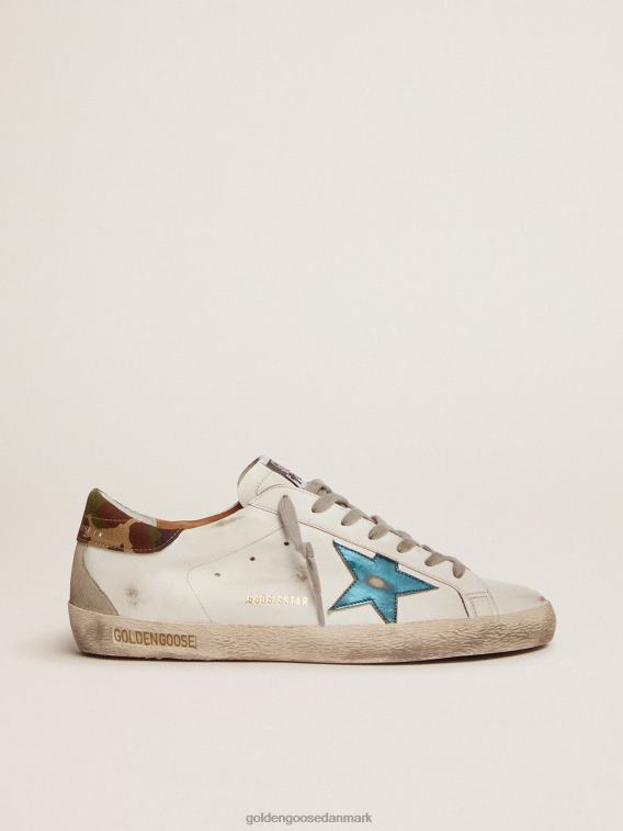 Golden Goose Sko P0J62676 mænd | Golden Goose Super-stjernet sneakers med benzinblå metallisk læderstjerne og camouflage ripstop stof hæl fane