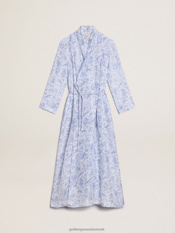 Golden Goose Danmark P0J621018 kvinder | Golden Goose Resort Collection Linen Blend Kaftan Dress med Middelhavsblåt tryk
