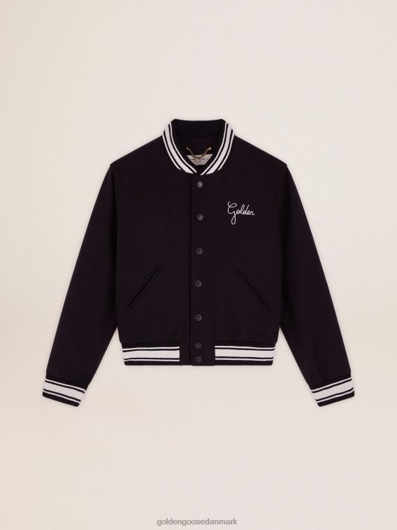 Golden Goose Danmark P0J621028 kvinder | Golden Goose Bomberjakke i mørkeblå uld med kontrasterende hvide detaljer