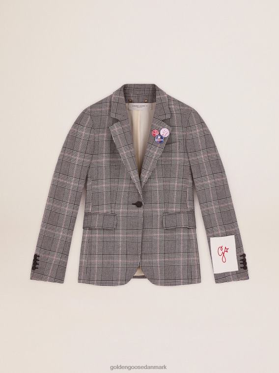 Golden Goose Danmark P0J621036 kvinder | Golden Goose Samling med en-breasted blazer i grå og hvid prins af Wales check