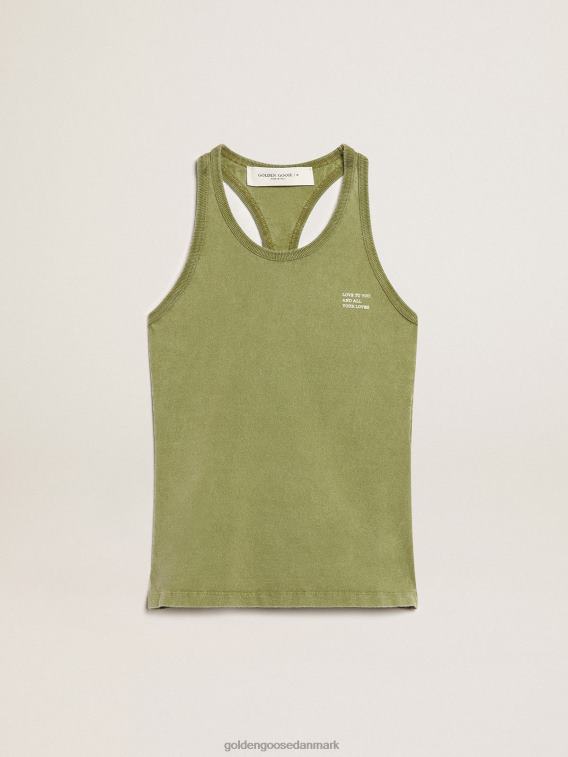 Golden Goose Danmark P0J621044 kvinder | Golden Goose pesto-grøn tank top med hvid bogstaver på fronten