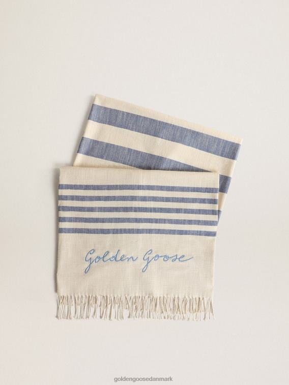 Golden Goose Danmark P0J62302 kvinder | Golden Goose Resort Collection Cotton Beach håndklæde med blå striber og frynser