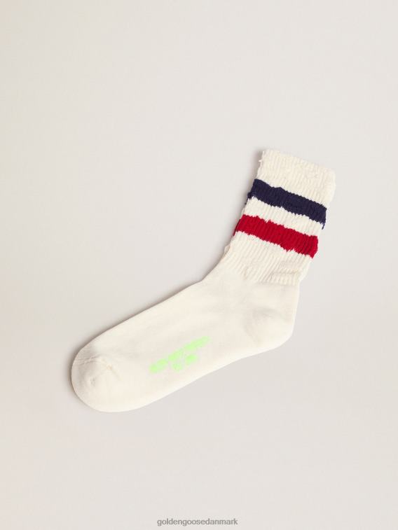 Golden Goose Danmark P0J62347 kvinder | Golden Goose Vintage hvide sokker med nødlidende detaljer og to-tone striber