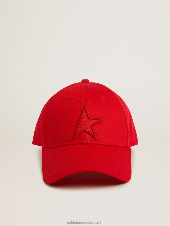 Golden Goose Danmark P0J62378 mænd | Golden Goose Rød bomuldsbaseballkappe med tone-til-tone-stjerneformet patch på fronten