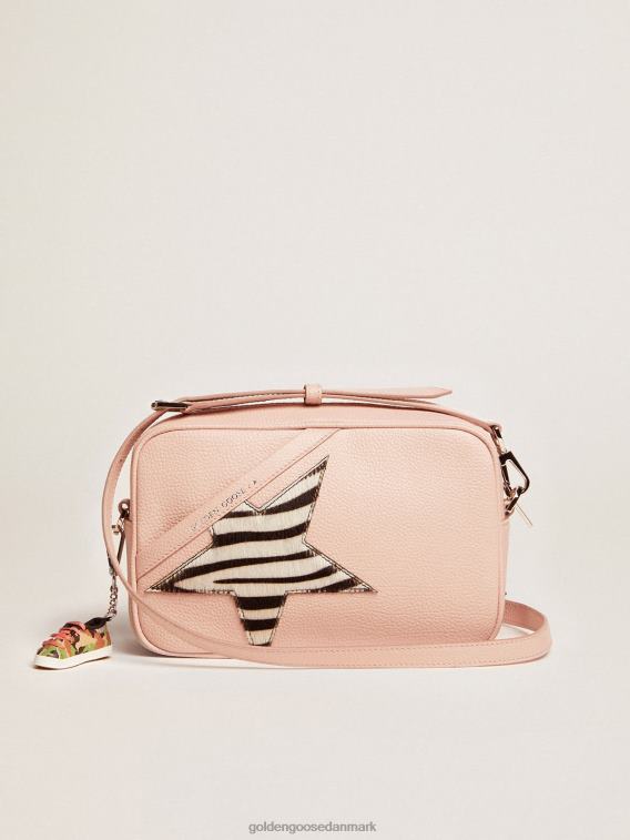 Golden Goose Danmark P0J62468 kvinder | Golden Goose Stjernetaske i lyserødt læder med zebra-print pony hudstjerne