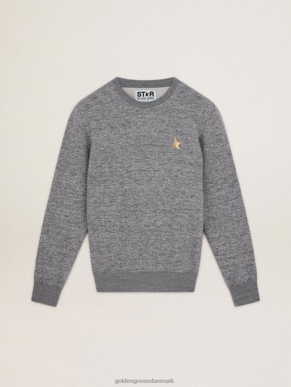 Golden Goose Danmark P0J62745 mænd | Golden Goose Melange-Gray Archibald Star Collection Cotton Sweatshirt med kontrasterende guldstjerne på fronten