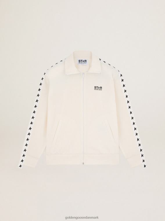 Golden Goose Danmark P0J62762 mænd | Golden Goose Hvid lynlåset sweatshirt med hvid strimmel og sorte stjerner