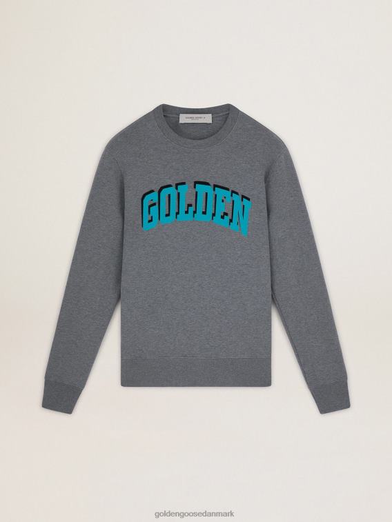 Golden Goose Danmark P0J62767 mænd | Golden Goose Grå rejse -samling sweatshirt med kontrasterende turkis gylden bogstaver