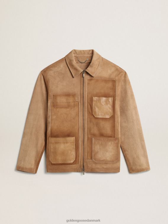 Golden Goose Danmark P0J62793 mænd | Golden Goose Sandfarvet læderjakke med pletter og zip fastgørelse