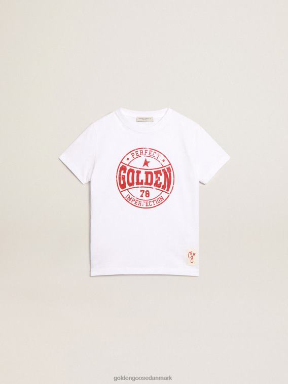 Golden Goose Danmark P0J62902 børn | Golden Goose Drenges hvide t-shirt med trykt rødt logo i midten