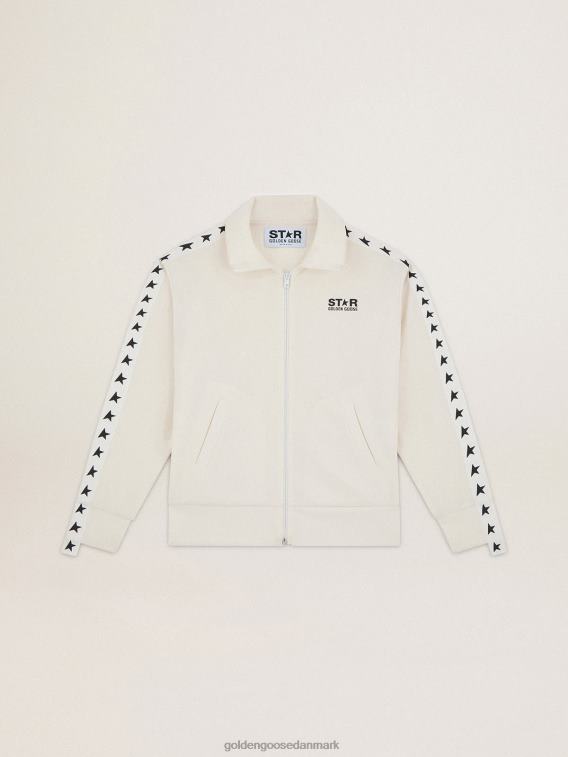 Golden Goose Danmark P0J62935 kvinder | Golden Goose Hvid lynlåset sweatshirt med hvid strimmel og sorte stjerner