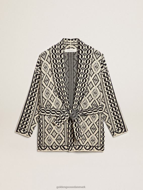 Golden Goose Danmark P0J62946 kvinder | Golden Goose Cardigan i papyrusfarvet uld med jacquard-motiv og krystaller