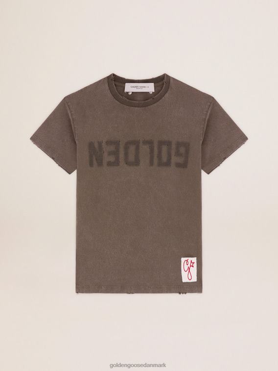 Golden Goose Danmark P0J62961 kvinder | Golden Goose olivengrøn slim-fit t-shirt med gylden bogstaver på fronten