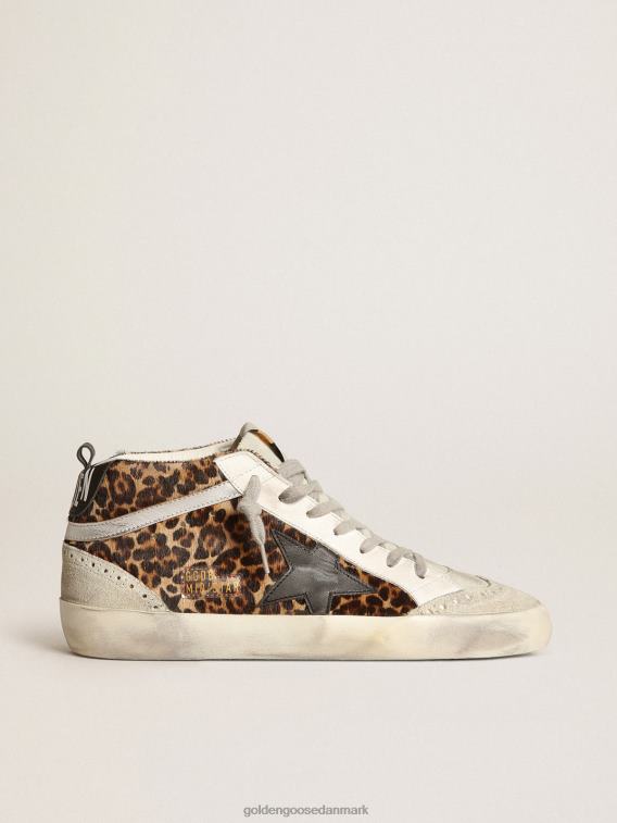 Golden Goose Sko Dame P0J62180 kvinder | Golden Goose Mid Star Sneakers in Leopard-Print Pony Skin med Black Leather Star og Silver Laminated Leather Flash