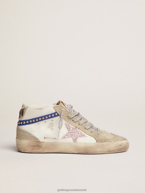 Golden Goose Sko Dame P0J6277 kvinder | Golden Goose Mid Star Ltd sneakers med hvid og lyserød glitterstjerne og blå læderblitz med guldfarvede studs