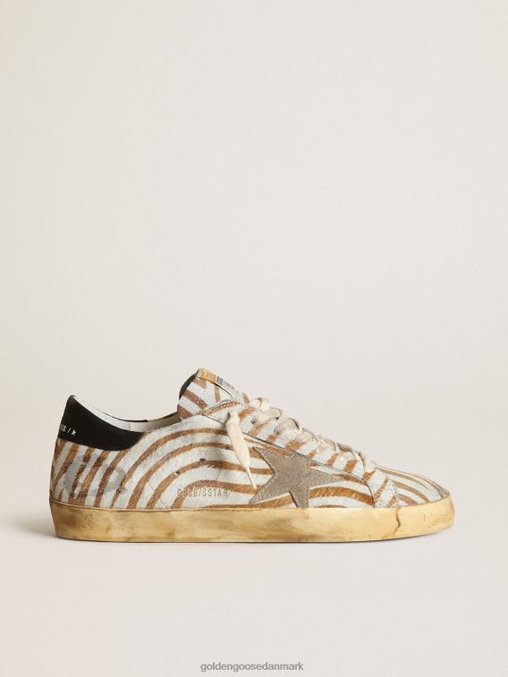 Golden Goose Sko P0J62536 mænd | Golden Goose Super-stjernet sneakers i Zebra-Print Pony Skin med Dove-Gray Suede Star