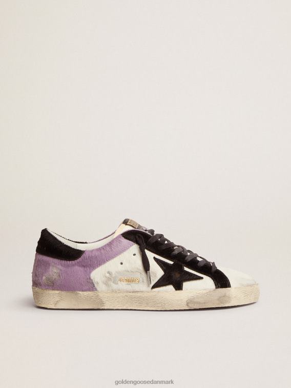 Golden Goose Sko P0J62556 mænd | Golden Goose Super-stjerners sneakers i hvid og lilla pony hud med sorte ponyhudindsatser