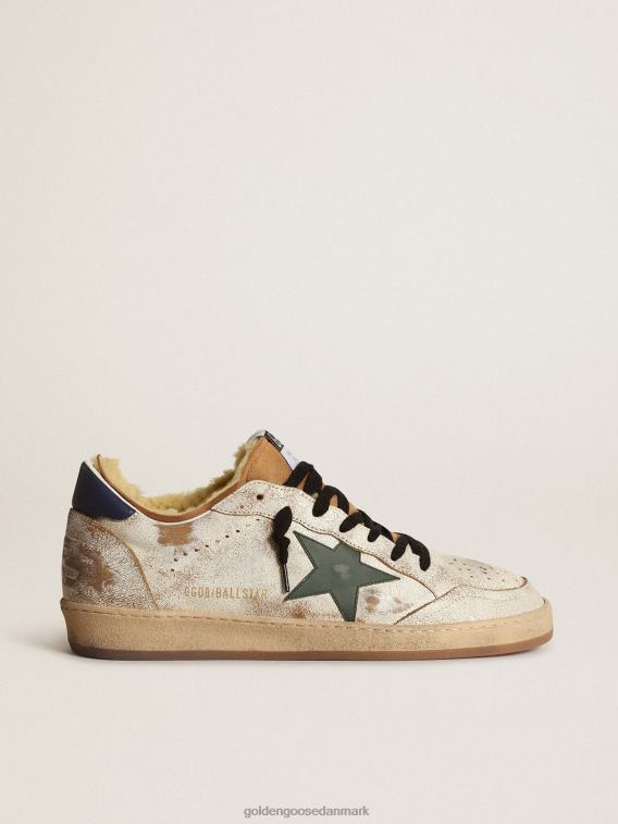 Golden Goose Sko P0J62684 mænd | Golden Goose Ball Star -sneakers i blankt hvidt læder med mørkegrøn læderstjerne og klipning foring